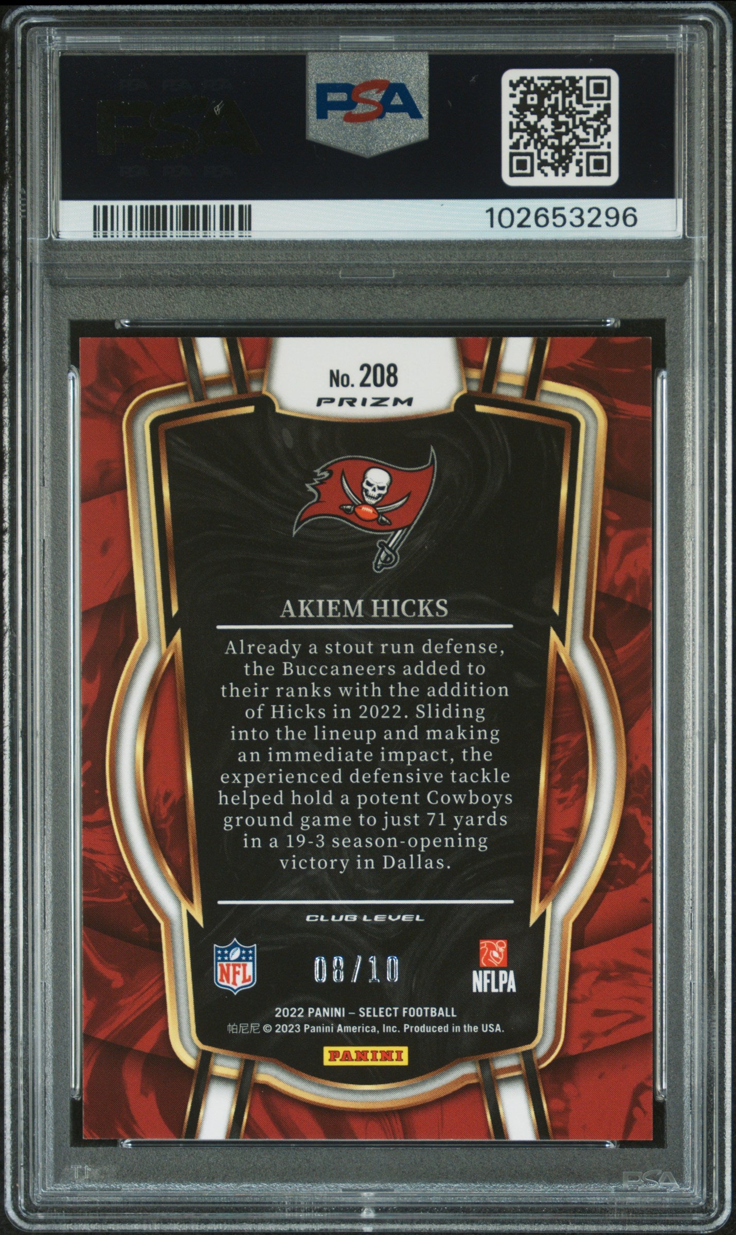 You are purchasing a PSA 9 2022 Panini Select Akiem Hicks #208 Gold Disco Prizm. You will receive the exact... Read more