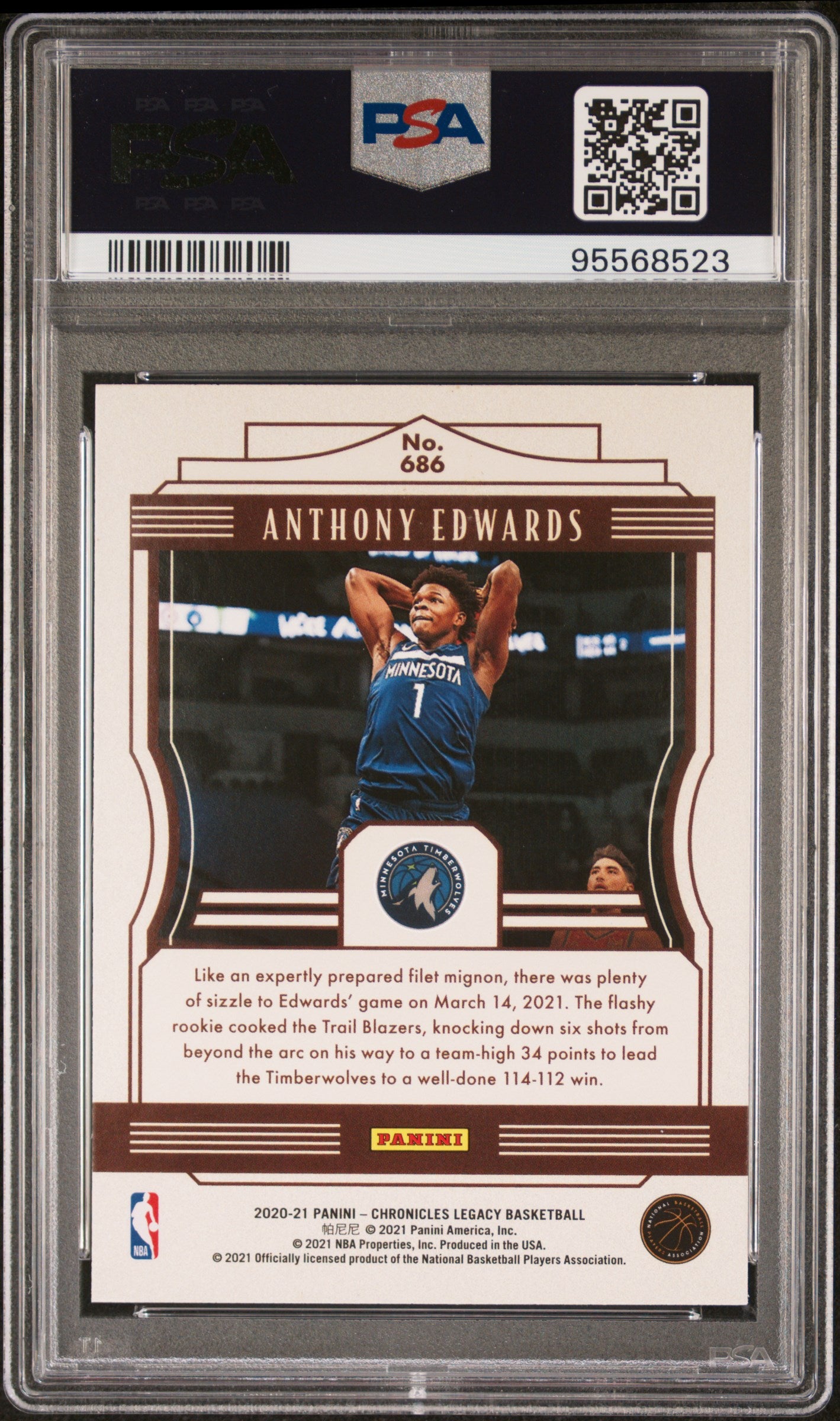 You are purchasing a PSA 10 2020 Panini Chronicles Anthony Edwards #686. You will receive the exact item in the... Read more