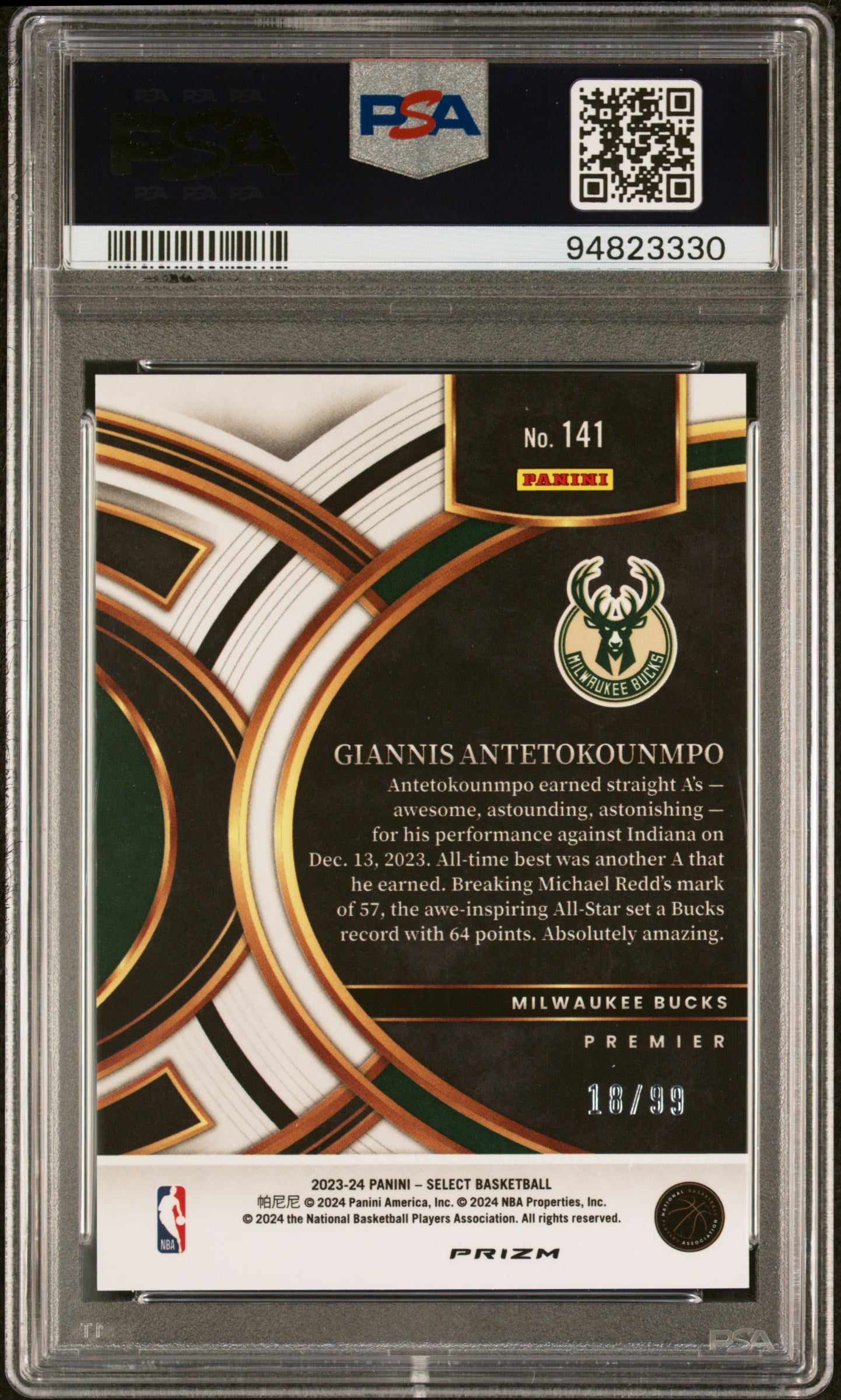 You are purchasing a PSA 10 2023 Panini Select Giannis Antetokounmpo #141 Light Blue Disco. You will receive the exact... Read more