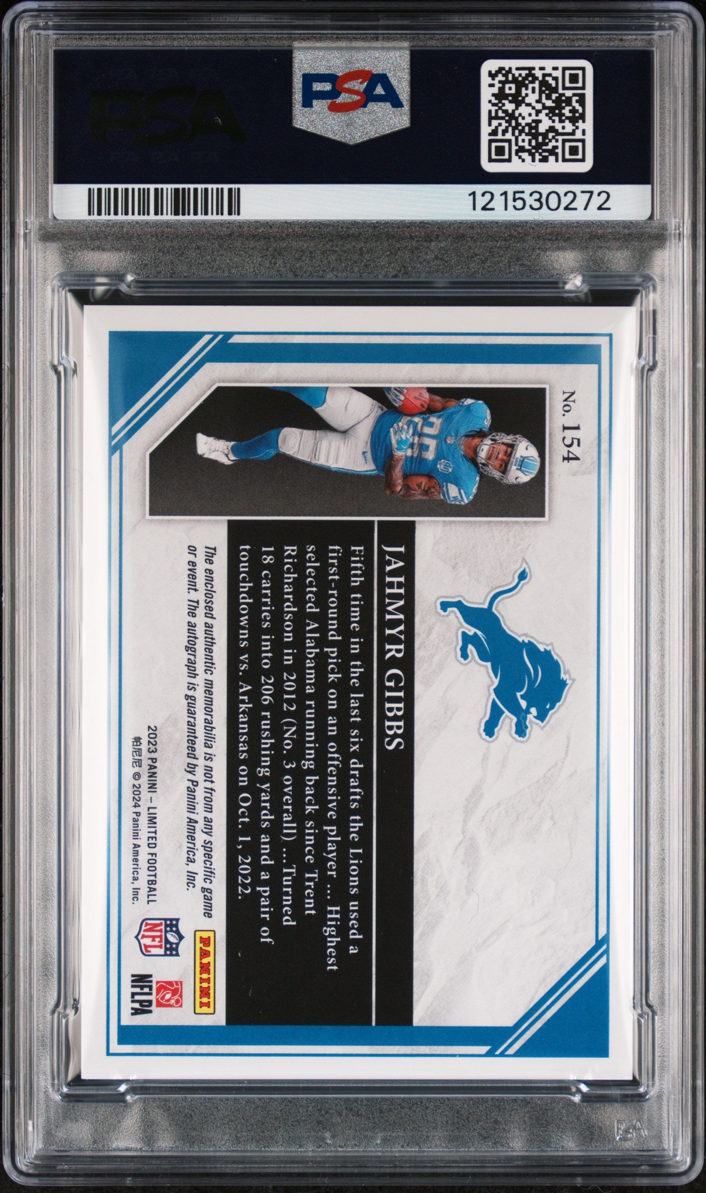 Jahmyr Gibbs PSA 9 2023 Panini Limited #154 Patch Autograph Jumbo 38/99