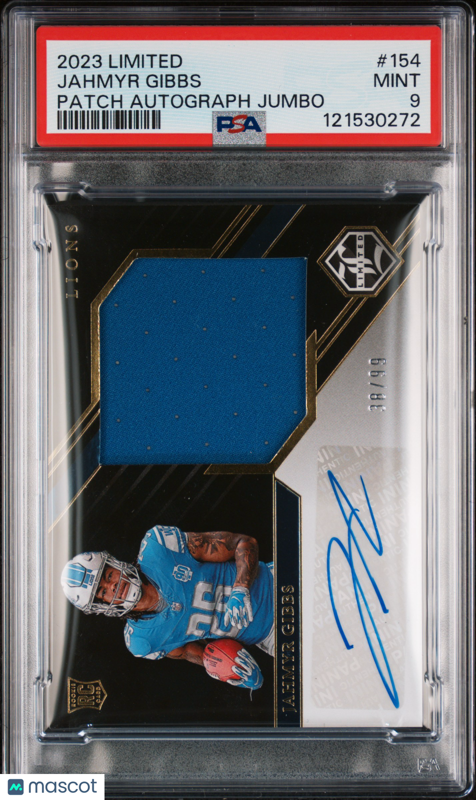 You are purchasing a PSA 9 2023 Panini Limited Jahmyr Gibbs #154 38/99 Patch Autograph Jumbo. You will receive the... Read more