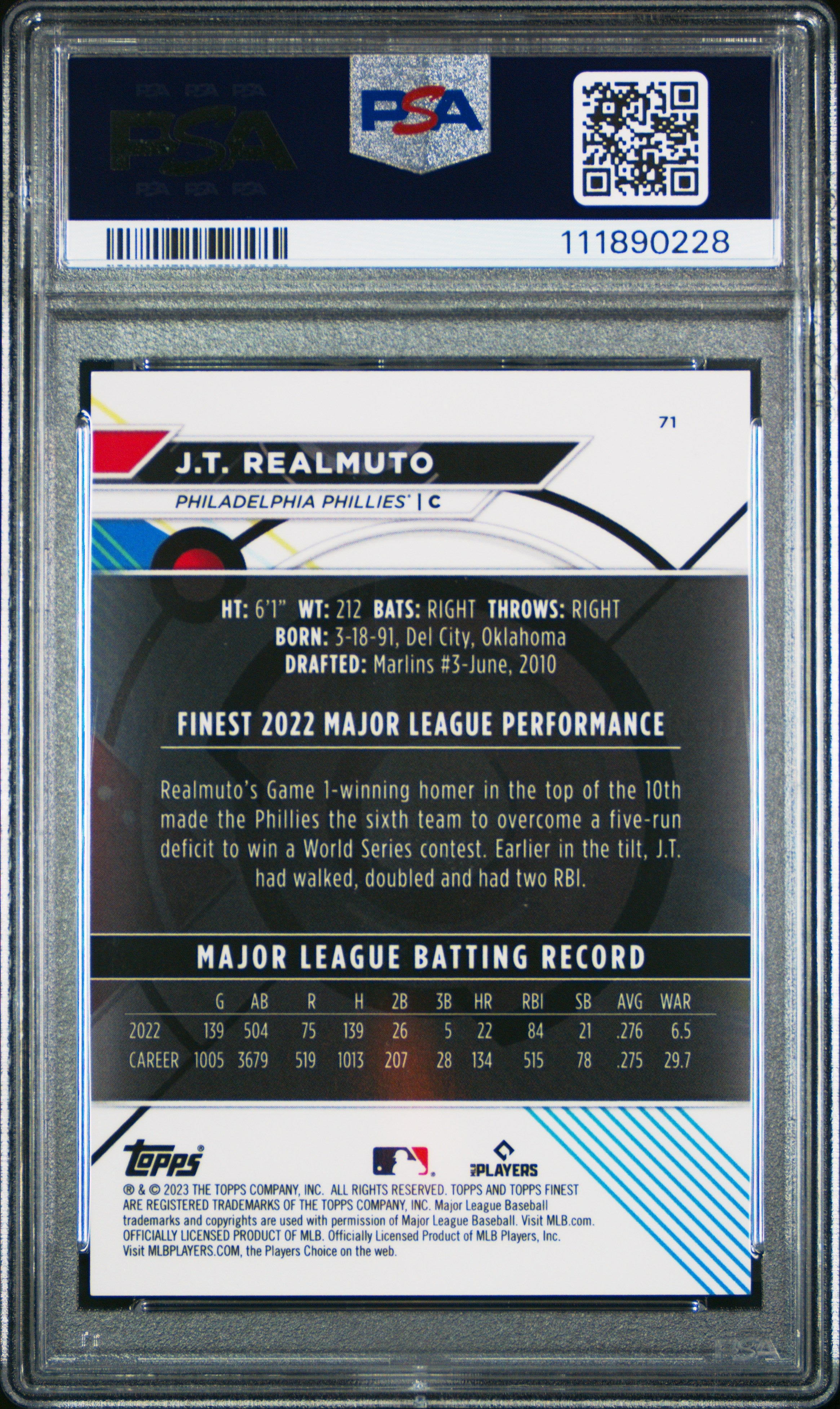JT Realmuto PSA 9 2023 Topps Finest #71 Blue 091/150