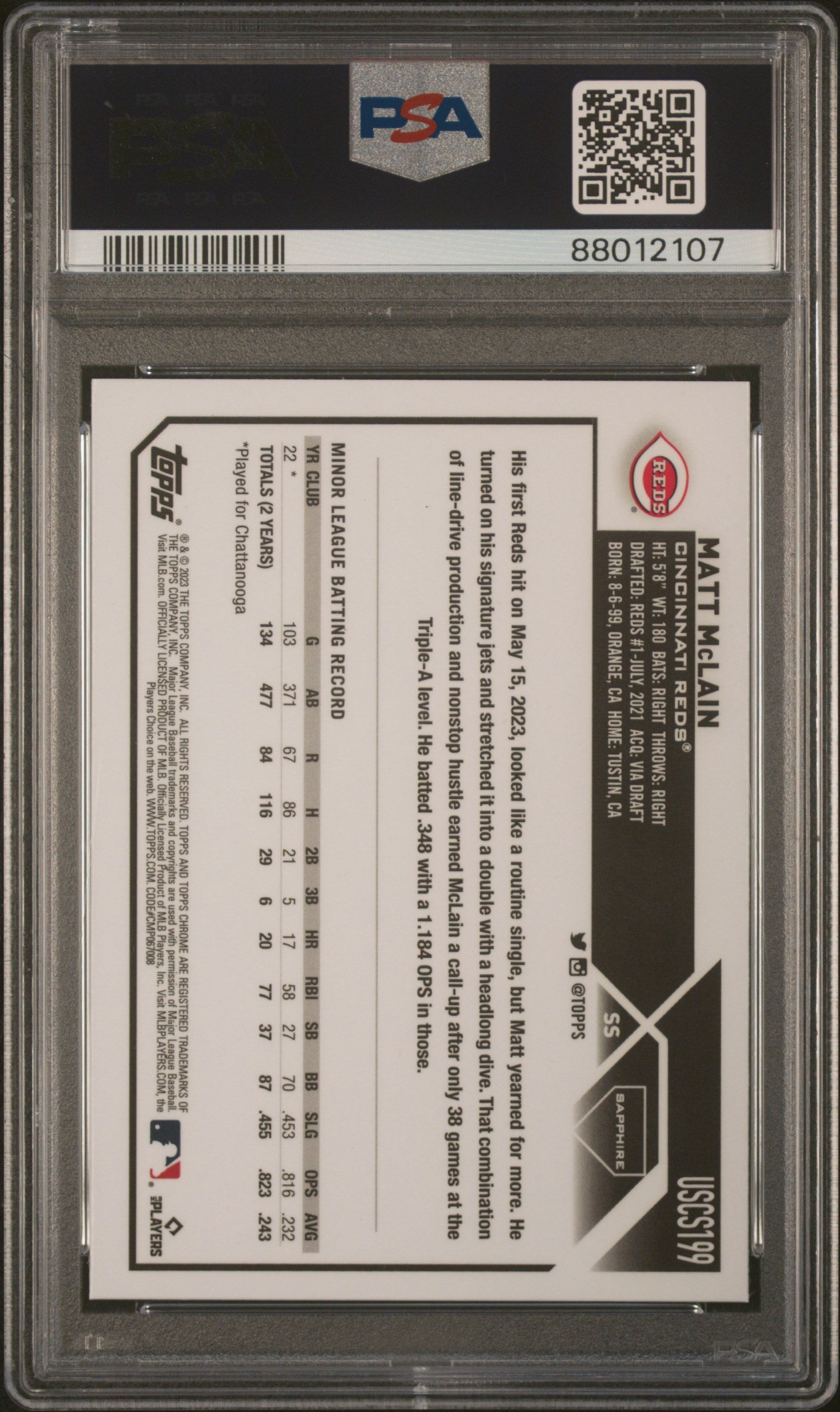 Matt Mclain PSA 9 2023 Topps Chrome Update Sapphire Edition #199