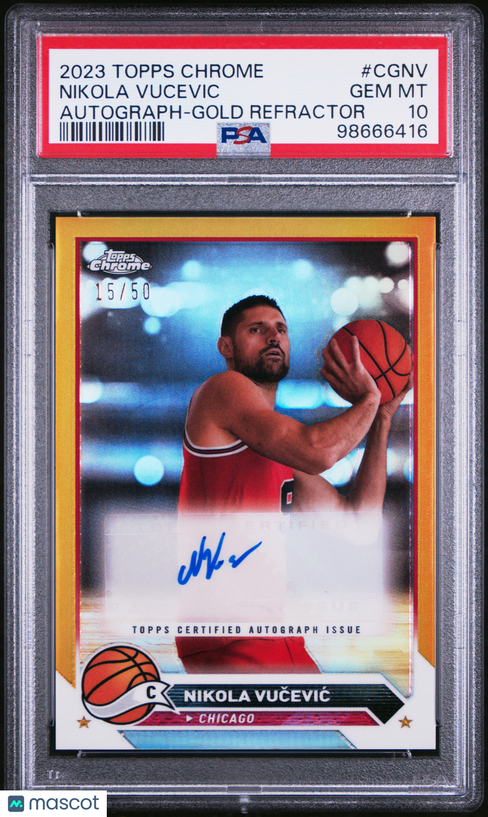 You are purchasing a PSA 10 2023 Topps Chrome Topps Chrome Autographs Nikola Vucevic #CGNV 15/50 Gold Refractor. You will... Read more