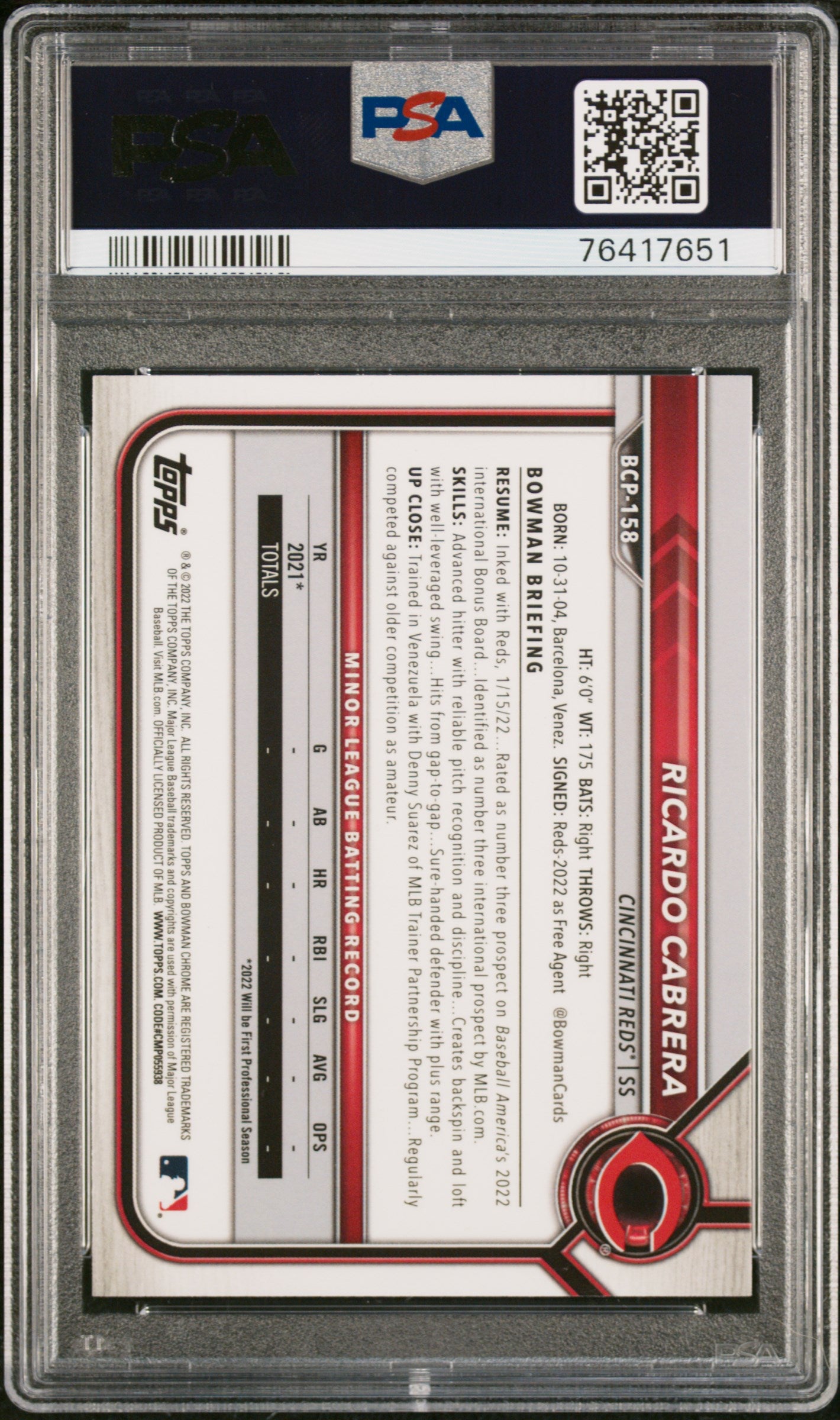 You are purchasing a PSA 9 2022 Bowman Mega Box Chrome Ricardo Cabrera #158. You will receive the exact item... Read more