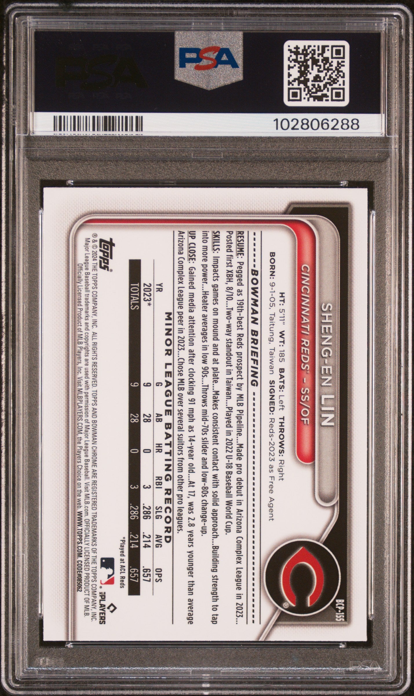 You are purchasing a PSA 8 2024 Bowman Chrome Prospects Sheng-EN Lin #BCP155 0/150 Blue Refractor. You will receive the... Read more