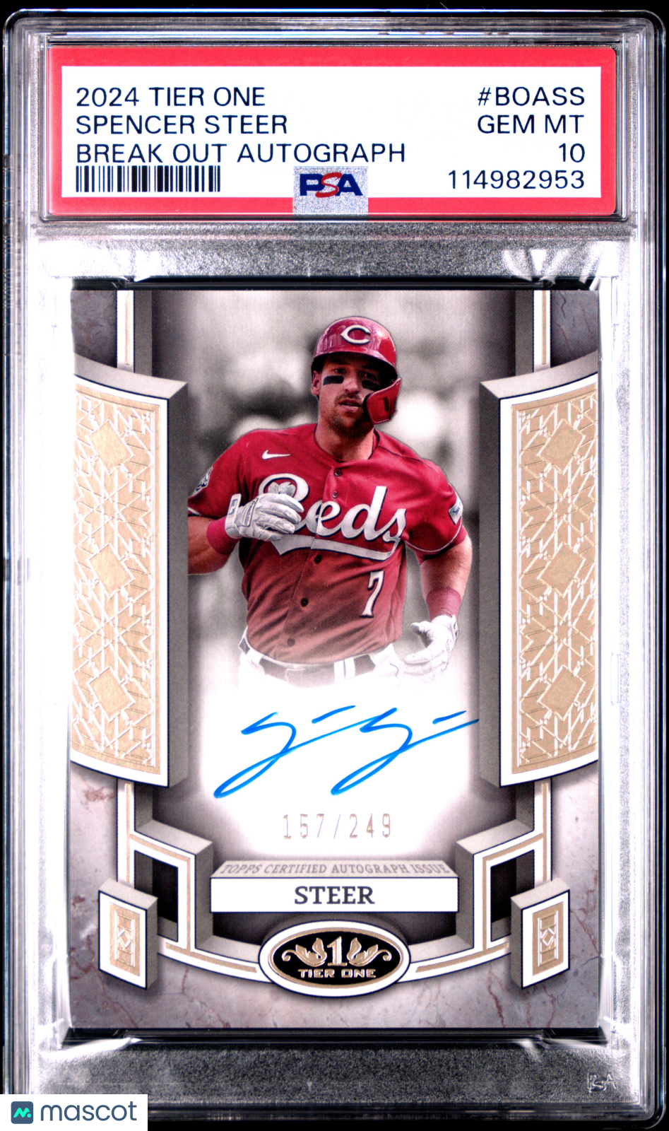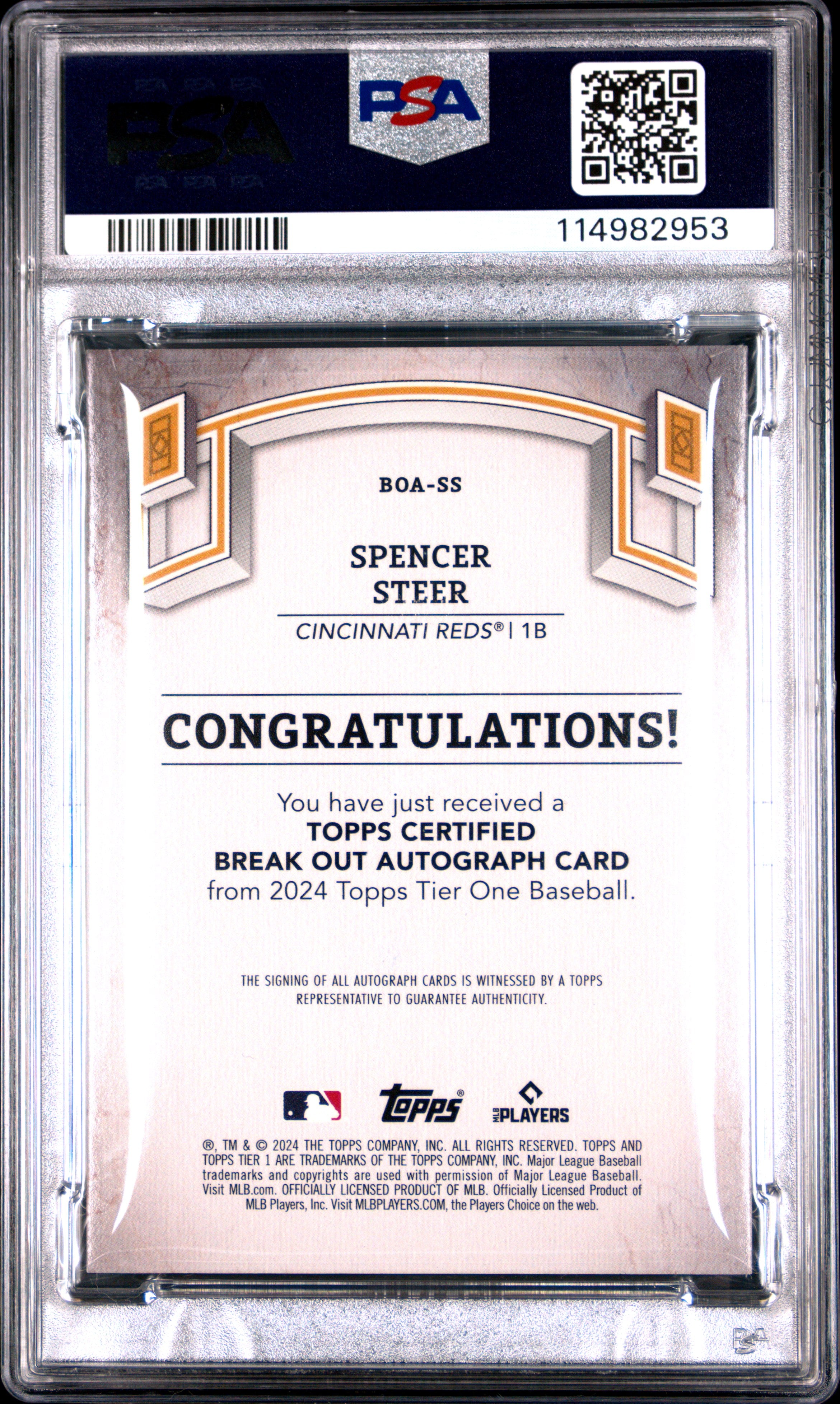 Spencer Steer PSA 10 2024 Topps Tier One Break Out Autographs #BOASS 157/249