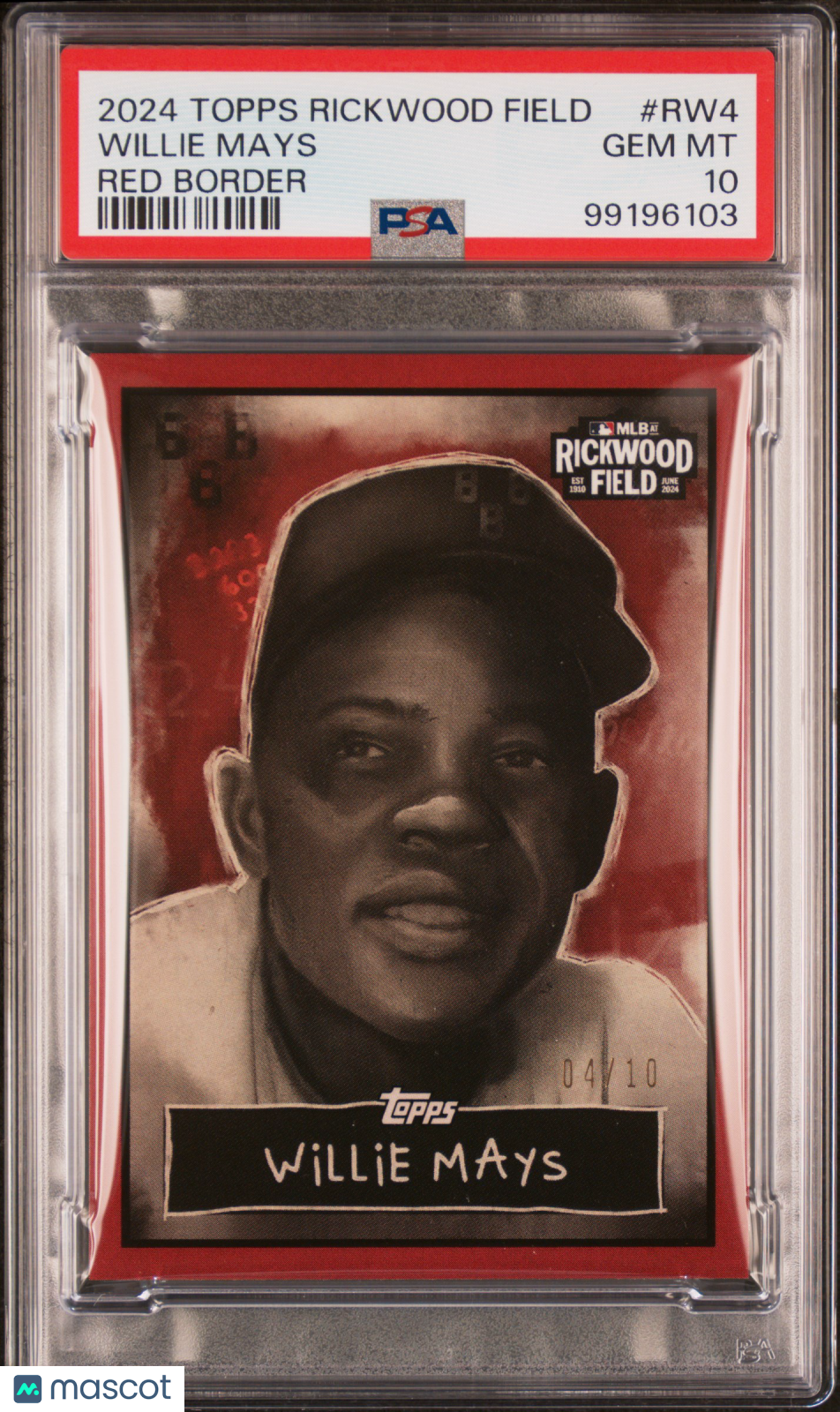 You are purchasing a PSA 10 2024 Topps MLB At Rickwood Field Willie Mays #RW4 04/10 Red Border. You will... Read more